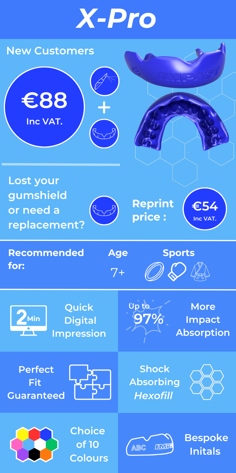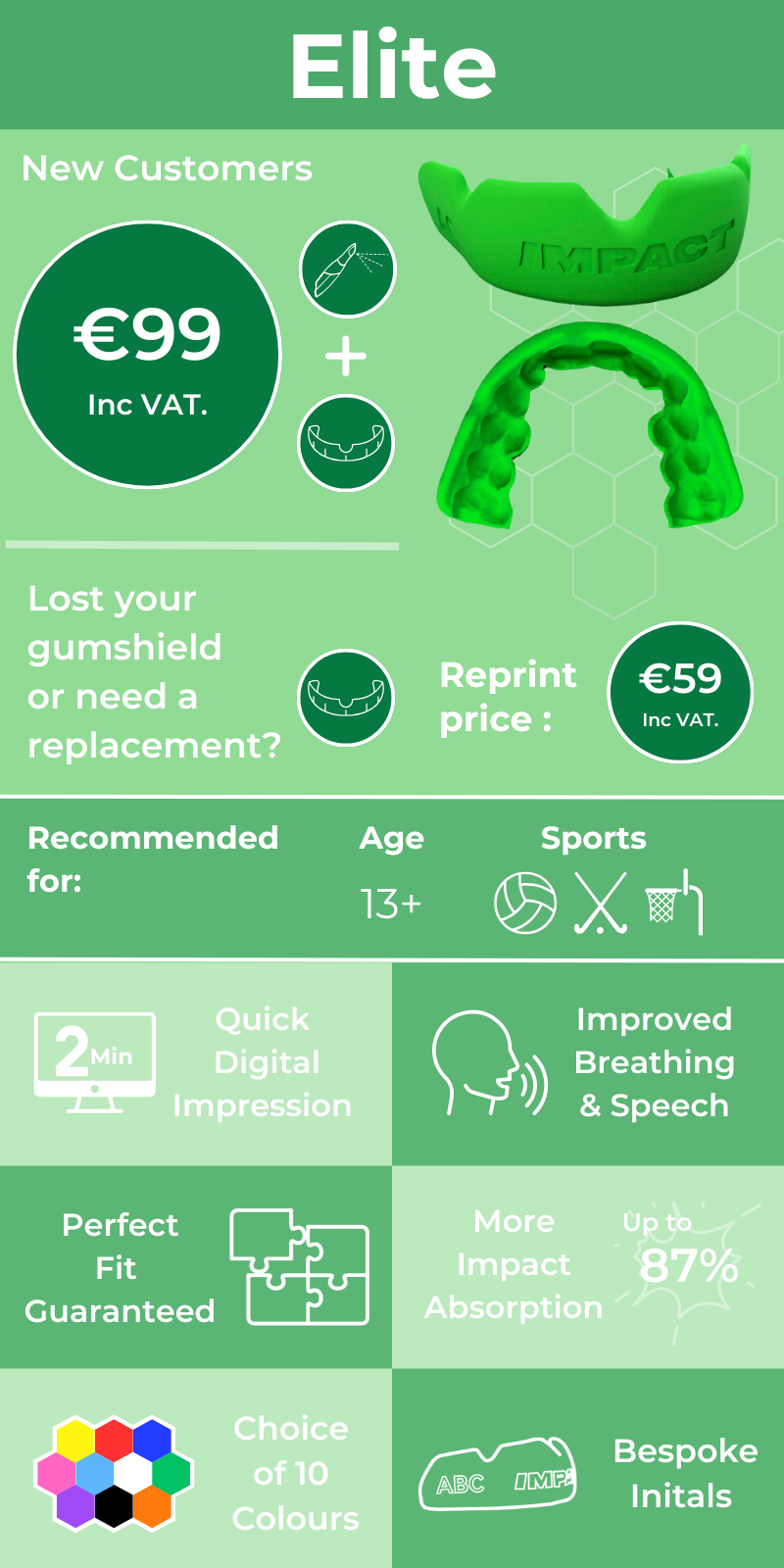 - Vereine/Schulen in der Republik Irland und Nordirland: Kontaktiere uns direkt unter +353(0)85 254 4644 oder per E-Mail an orders@impactgumshields.com.